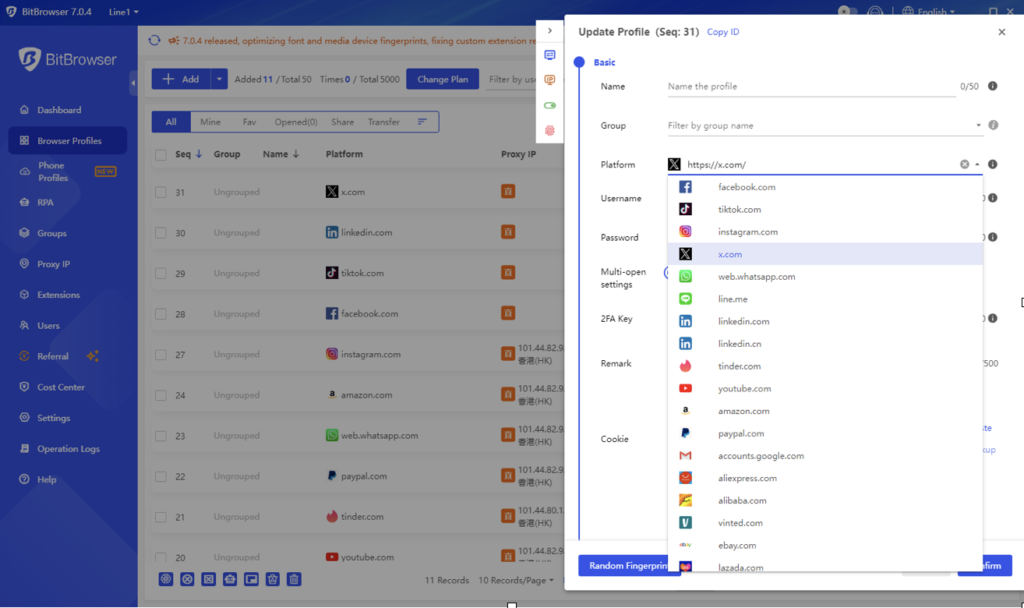 BitBrowser can log in to multiple accounts to prevent association. When you open BitBrowser, you can open multiple accounts on the same platform in the browser window to reduce the risk of unrelated accounts.