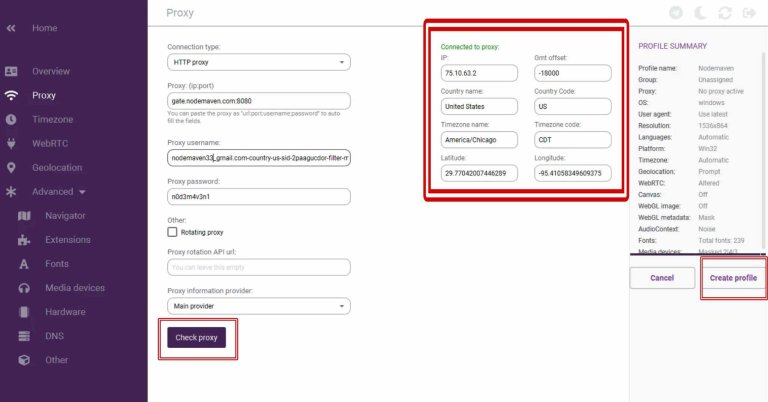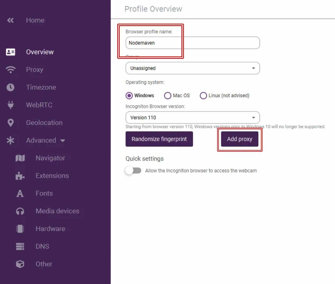NodeMaven proxies can be easily added to each Incogniton browser profile, giving each profile a unique IP address. This setup helps to prevent detection and maintain separate identities for efficient multi-account management.