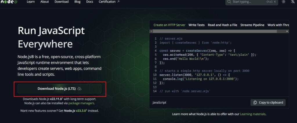 Before proceeding, check if Node.js is installed by opening a terminal (Command Prompt or shell) and typing the following command: